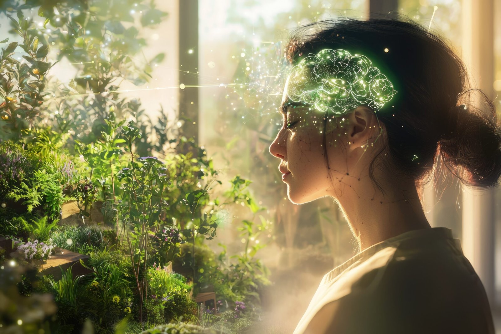 Charming couple sharing a romantic moment outdoors with vibrant greenery.